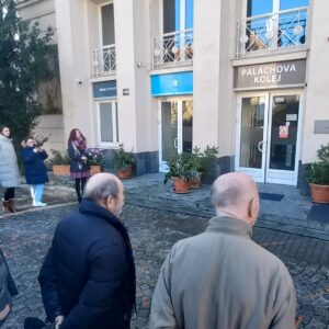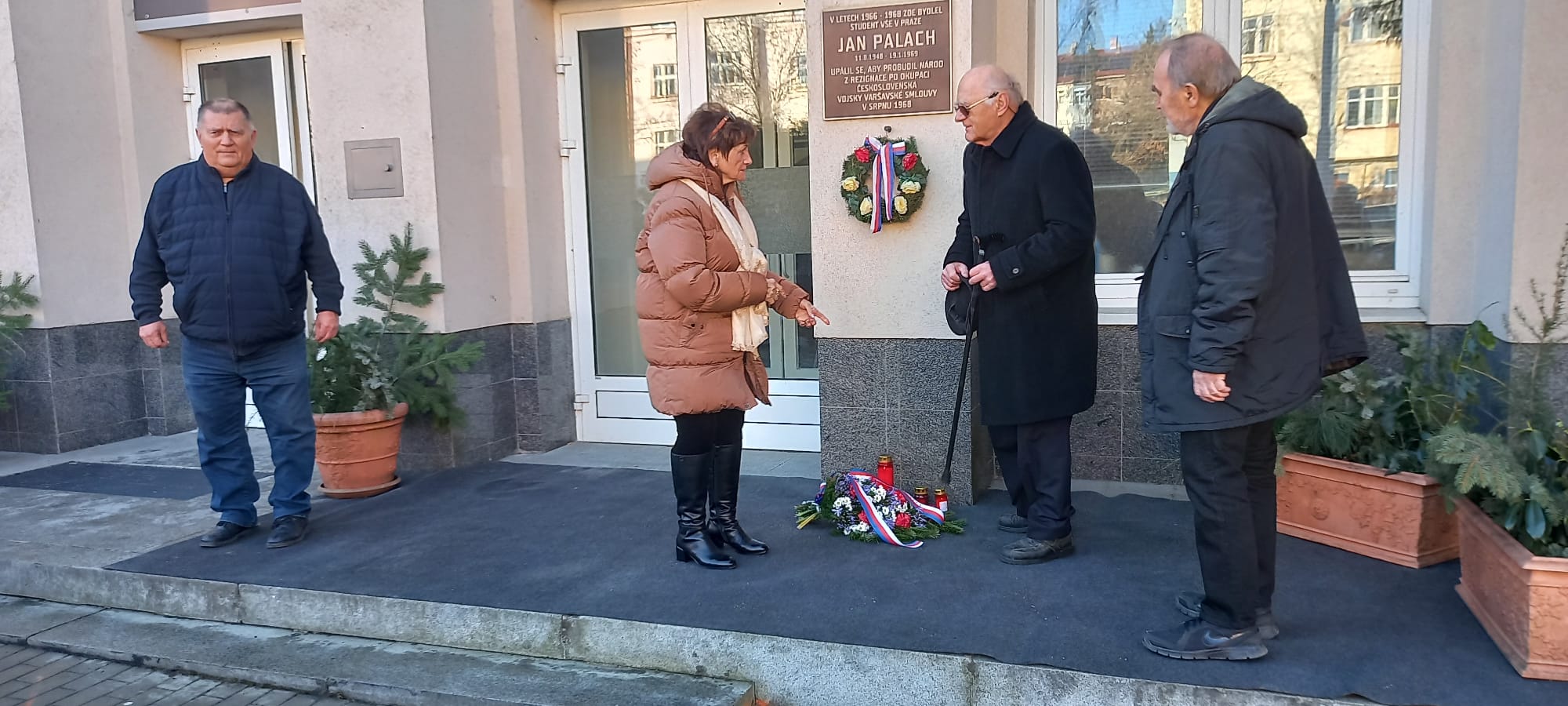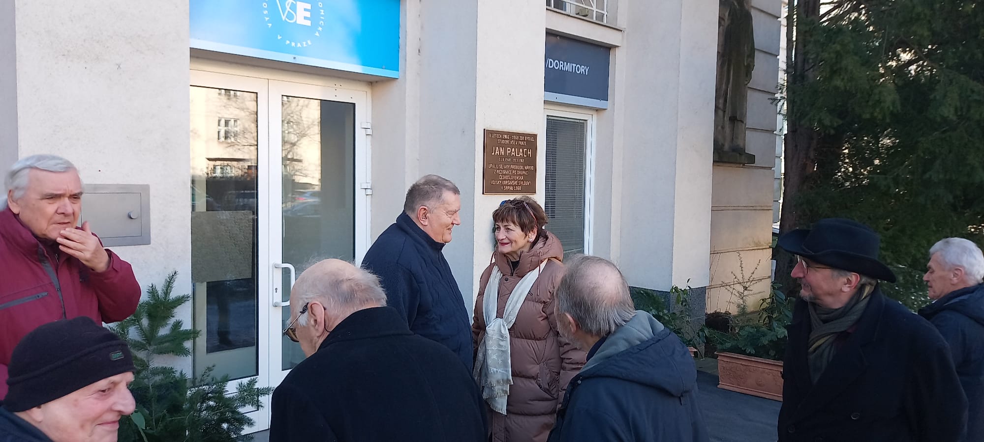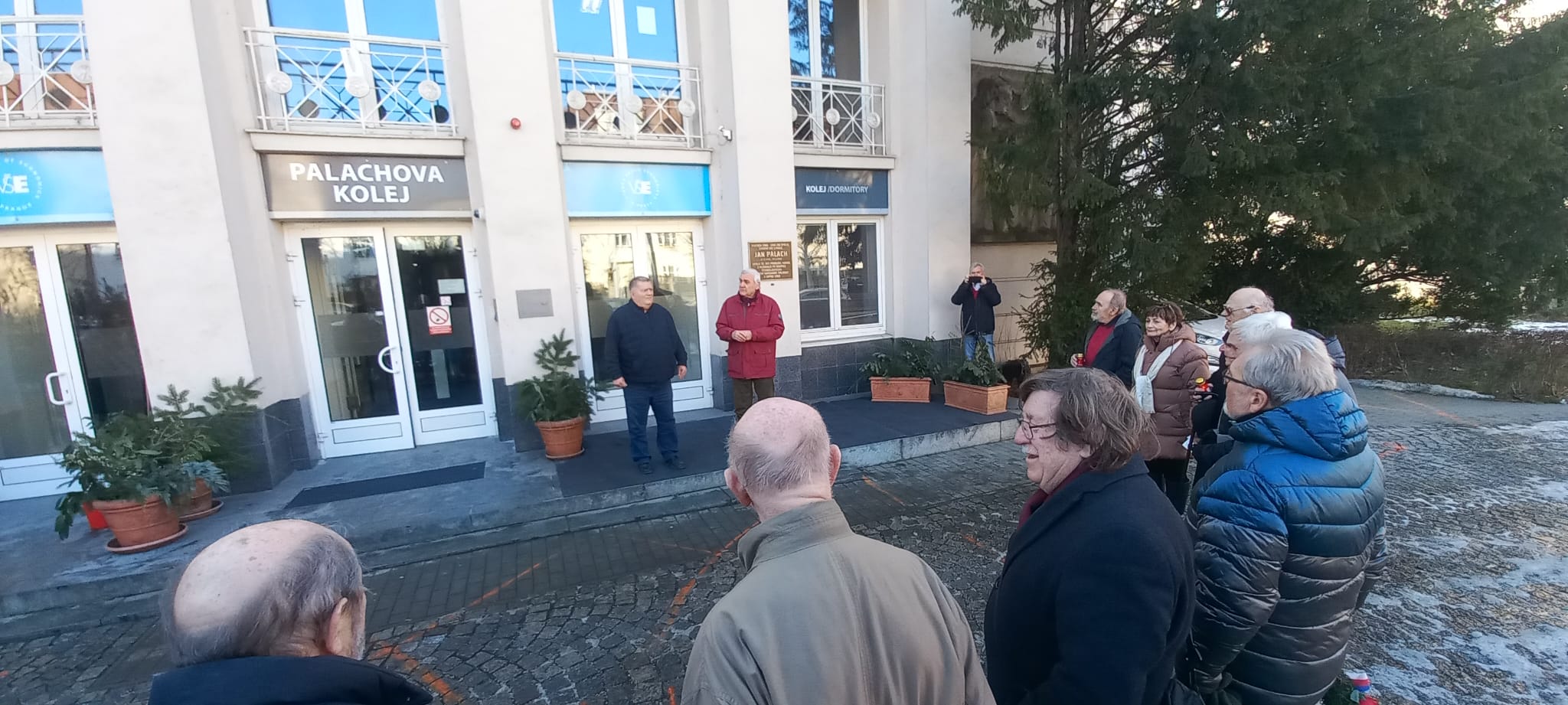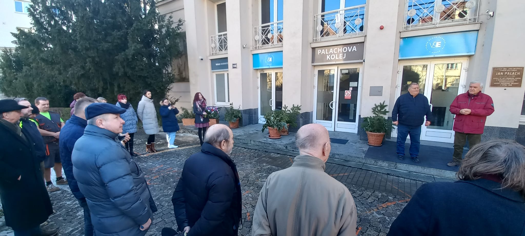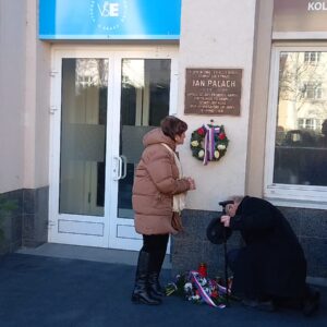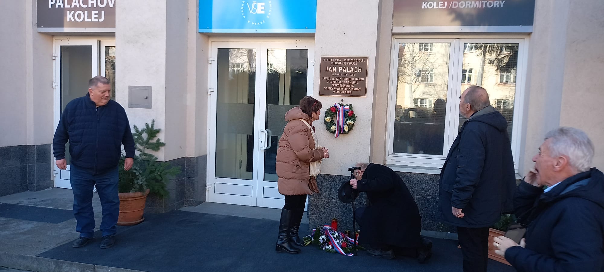 Zástupci Správy účelových zařízení Vysoké školy ekonomické v Praze a spolužáky Jana Palacha uctili 19.1. jeho památku u pamětní desky na budově Palachovy koleje VŠE.